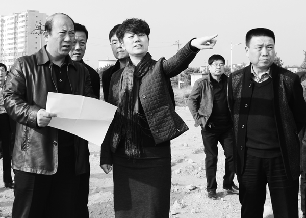 3月11日,县委副书记、政府县长梁秀娟深入威盛达新型防火建筑材料选址处现场办公。