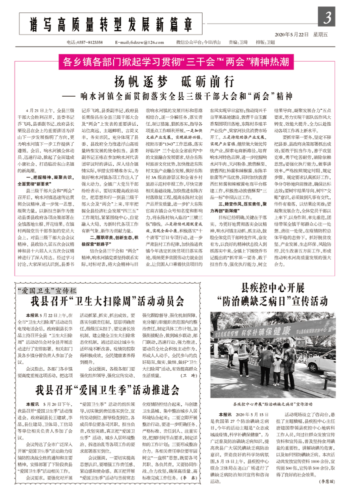 扬帆逐梦 砥砺前行—— 响水河镇全面贯彻落实全县三级干部大会和“两会”精神