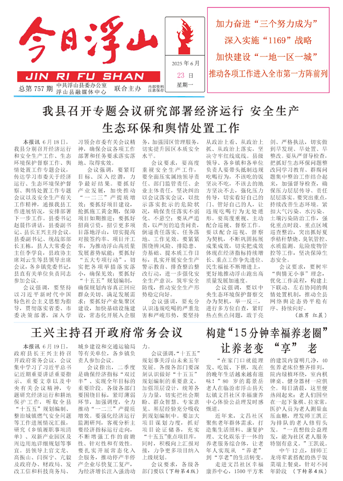 《今日浮山》中共浮山县委办公室 浮山县融媒体中心 联合主办 微信公众平台:今日浮山 邮箱:fsdzzw@126.com
