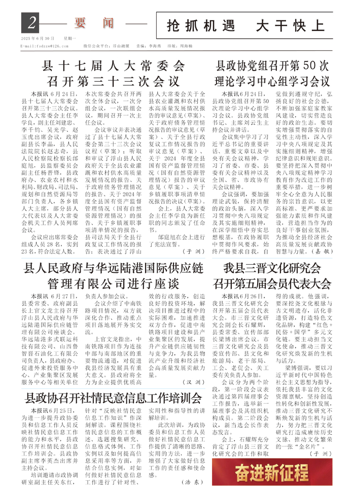 《今日浮山》中共浮山县委办公室 浮山县融媒体中心 联合主办 微信公众平台:今日浮山 邮箱:fsdzzw@126.com