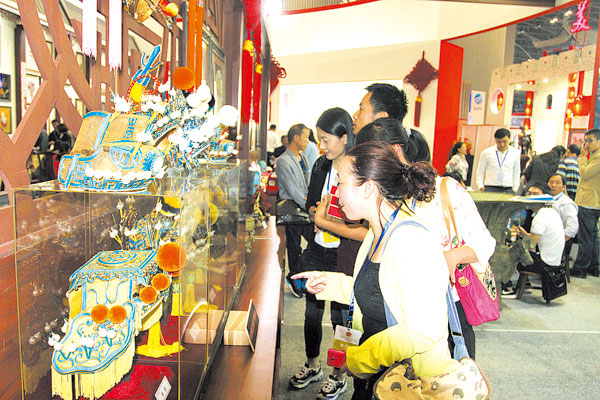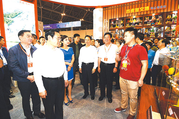 9月9日至15日,第二届山西文化产业博览交易会在中国(太原)煤炭交易中心举行,我县3家文化企业携60多件文化产品华彩绽放,作为上党文化的重要组成部分,赢得众多客商和参观者的青睐,让各界观众流连忘返。开馆当日,就受到巡馆的省委书记王儒林、省长李小鹏等省领导的交口称赞,对我县立足地域文化优势,给大学生村官创造发展环境,以文化兴业带动群众致富的做法给予充分肯定。我县清韵戏曲盔饰生产专业合作社负责人,大学生村官刘清河向巡馆的各位省领导作了现场汇报。
