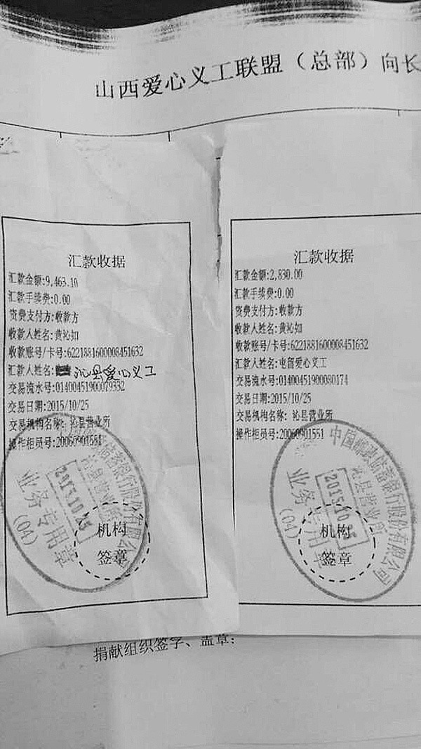 自愿者将募集到的善款通过银行打到指定受捐账户