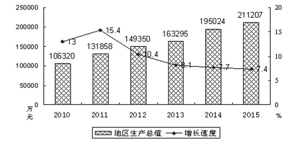 初步核算,全年全县地区生产总值211207万元,同比增长7.4%。其中:第一产业增加值54707万元,同比增长6.8%;第二产业增加值26100万元,同比增长3.2%;第三产业增加值130400万元,同比增长8.8%。